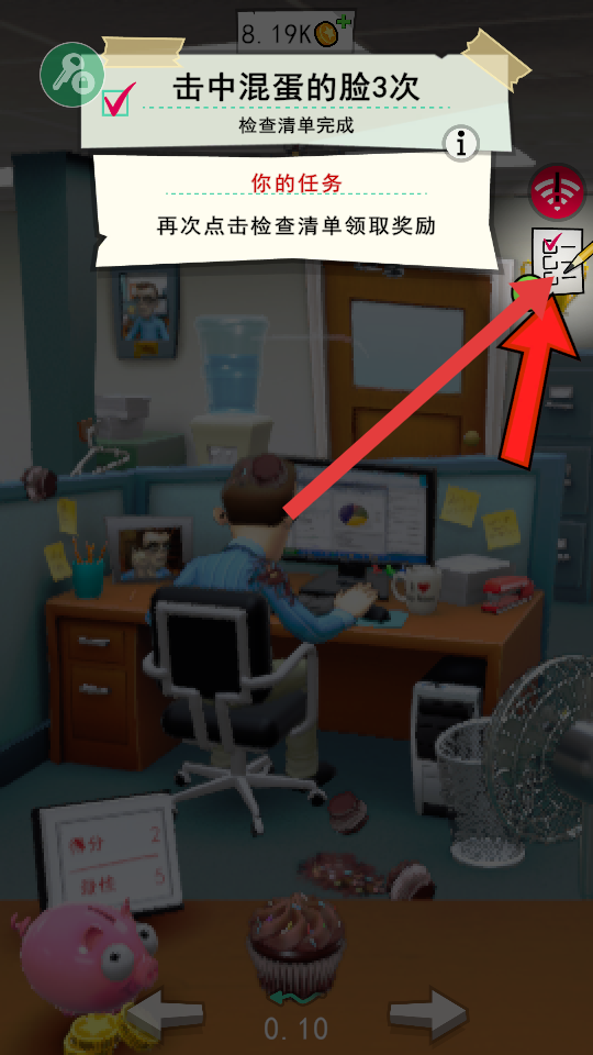 4、臉部攻擊任務(wù)完成后,再次點(diǎn)擊檢查清單圖標(biāo),領(lǐng)取獎(jiǎng)勵(lì),繼續(xù)推進(jìn)游戲進(jìn)程。