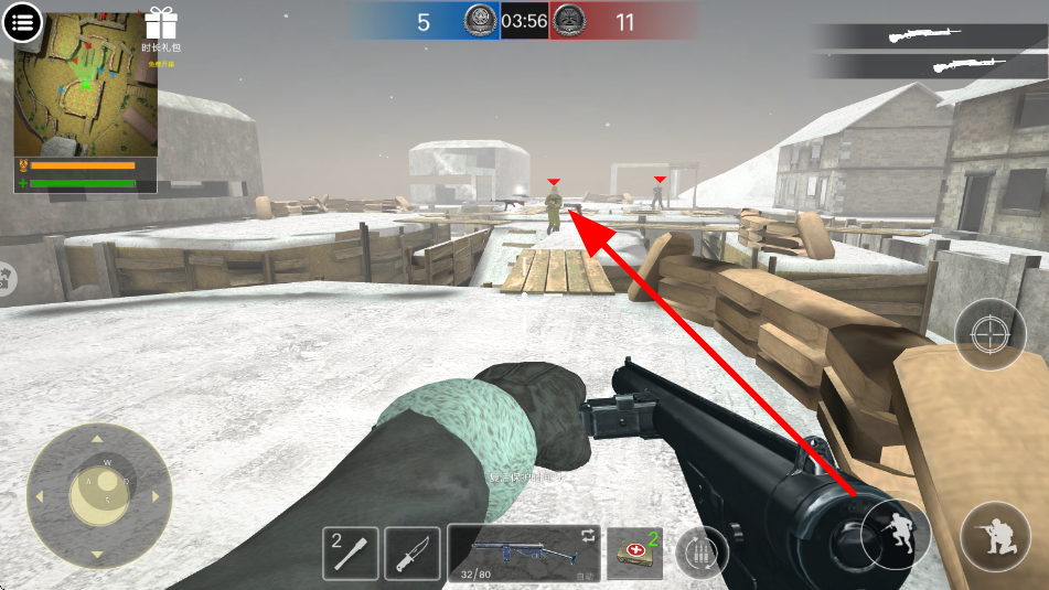 4、進(jìn)入戰(zhàn)場后,操控角色與敵人交戰(zhàn),利用手中的武器,瞄準(zhǔn)敵人進(jìn)行射擊,擊敗敵人,在二戰(zhàn)的戰(zhàn)場上取得勝利。