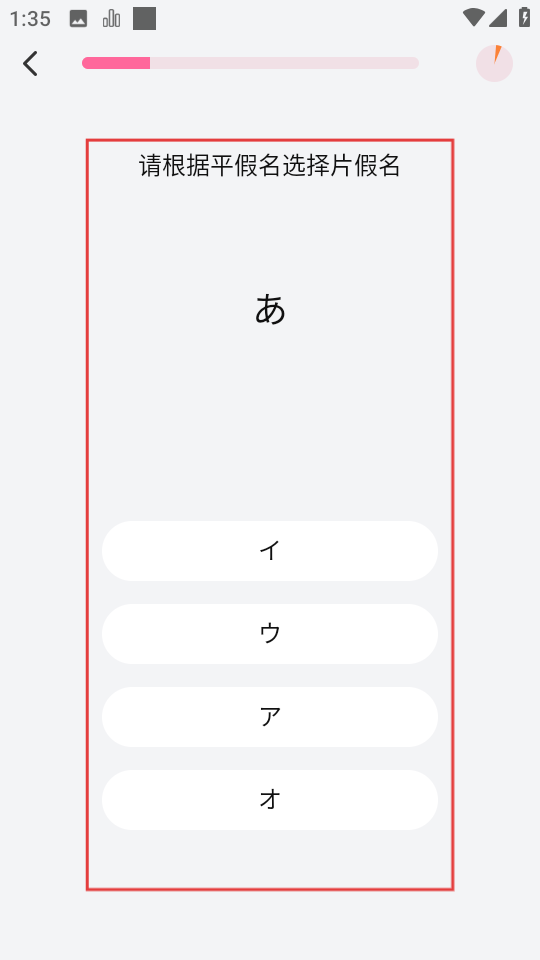 4、在練習(xí)環(huán)節(jié),根據(jù)平假名選擇對應(yīng)的片假名,完成練習(xí)。