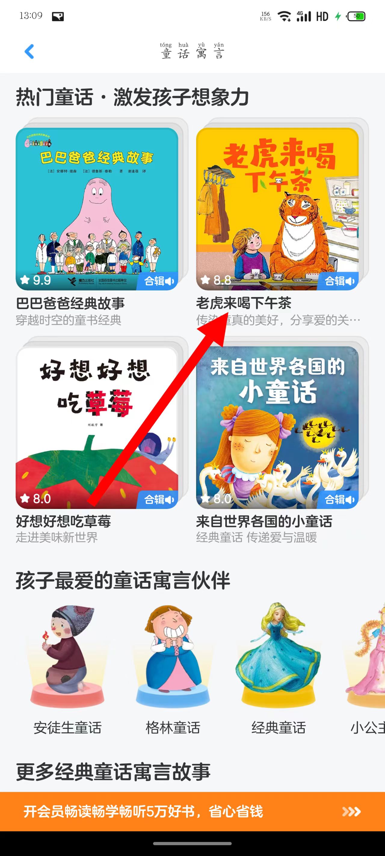 2、在童話寓言頁面點擊老虎來喝下午茶,進(jìn)入該繪本合輯頁面。