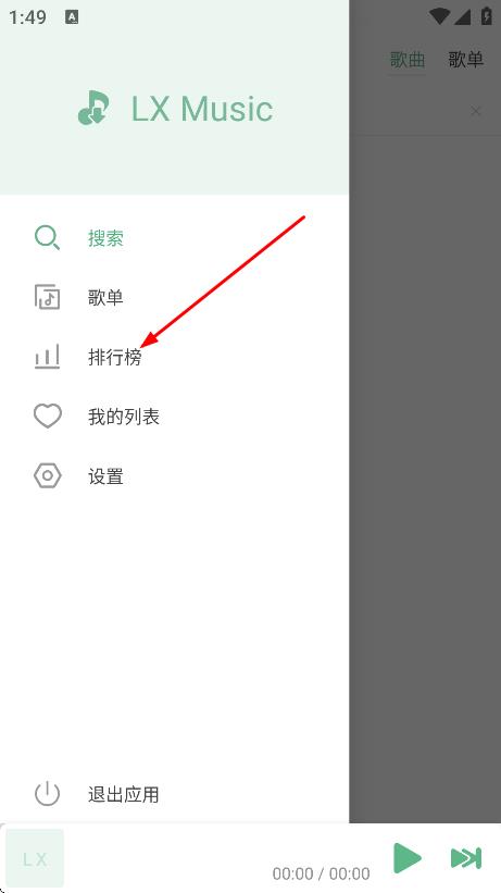 2、在側邊欄菜單中,點擊排行榜,進入排行榜頁面。