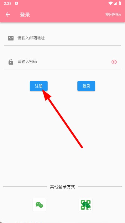 3、在登錄頁面點擊注冊按鈕,進(jìn)入注冊頁面。