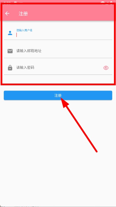 4、輸入用戶名、郵箱地址、密碼后點擊注冊,完成賬號注冊。