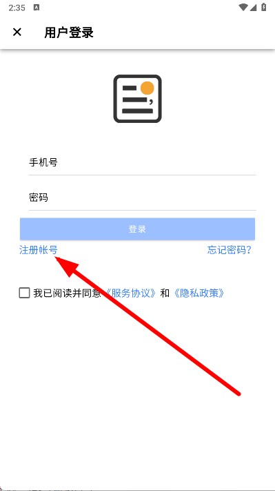 3、在用戶登錄頁面點擊注冊帳號,進入注冊頁面。