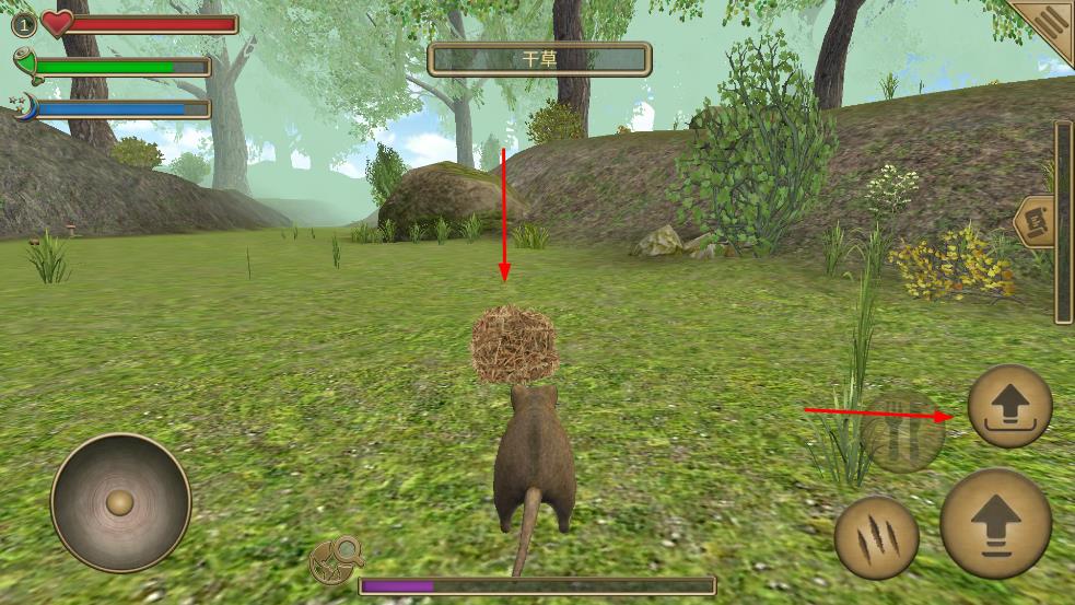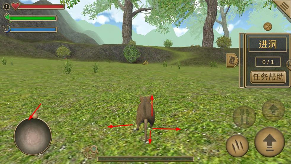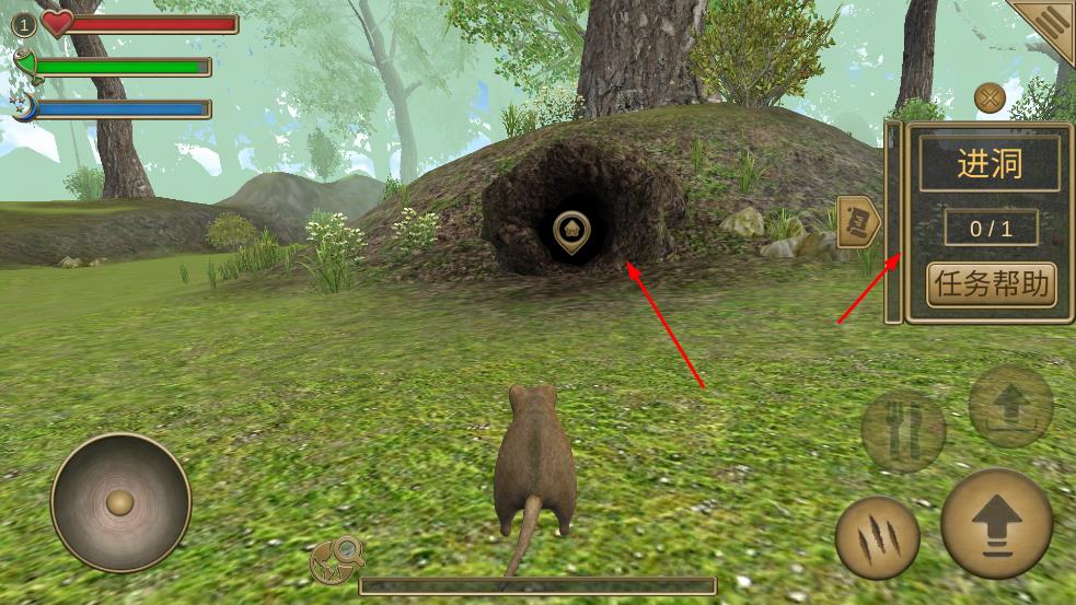 1、通過左側(cè)操縱桿控制老鼠移動,在草地與樹林間探索,這是開啟生存進程的基礎(chǔ)操作。