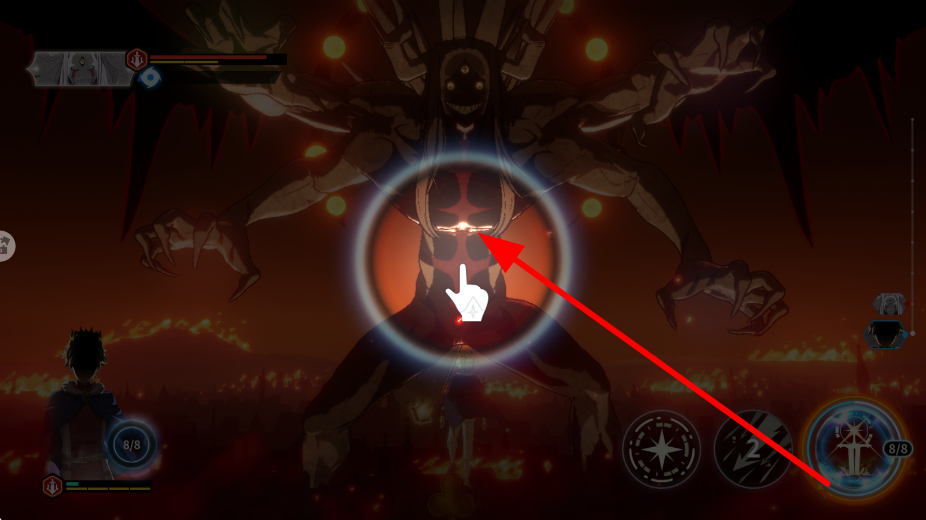 4、攻擊時(shí),要瞄準(zhǔn)敵人的關(guān)鍵部位,如圖中魔神的特定區(qū)域,點(diǎn)擊該部位,可讓攻擊更具針對(duì)性,提升傷害效果,更高效地?fù)魯橙恕?