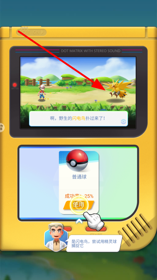3、捕捉精靈時(shí),若遇到野生精靈,如野生閃電鳥,可選擇合適的精靈球,像普通球,點(diǎn)擊使用,嘗試捕捉精靈,開啟與精靈的羈絆。