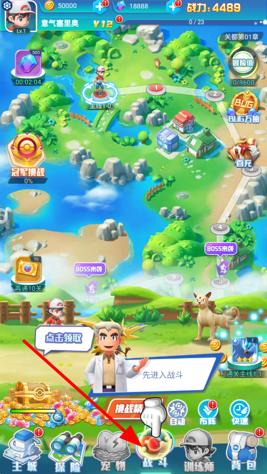 1、主界面點(diǎn)擊戰(zhàn)斗選項(xiàng),即可進(jìn)入戰(zhàn)斗場景,與對手及精靈展開交鋒,戰(zhàn)斗時(shí)需合理運(yùn)用策略,應(yīng)對不同敵人,提升獲勝幾率。