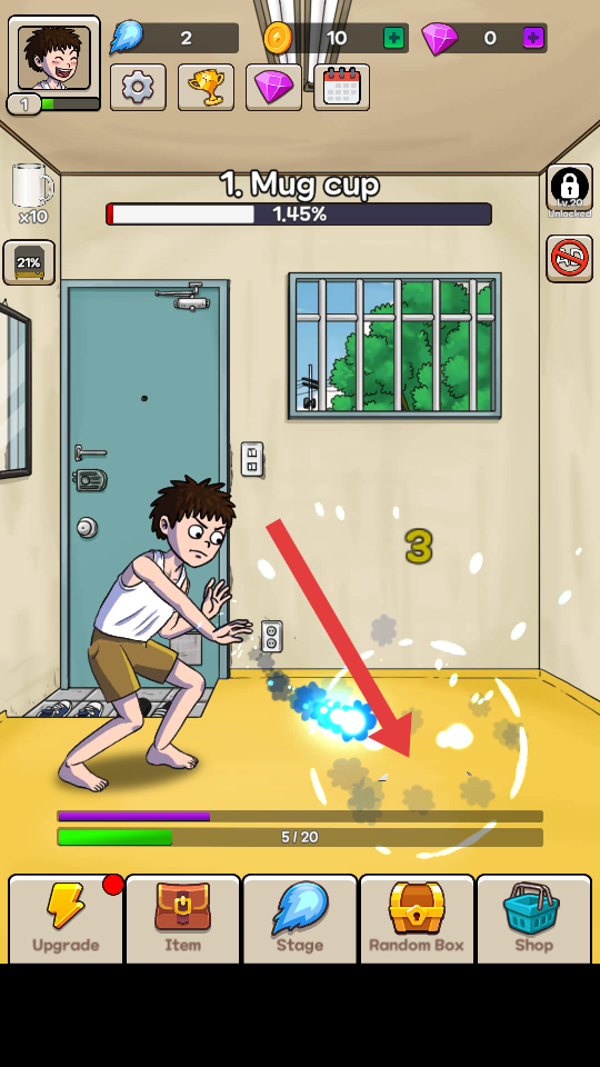 4、持續(xù)對目標(biāo)物品發(fā)起攻擊,其破壞進(jìn)度,在摧毀物品的過程中獲取大量金幣和經(jīng)驗,不斷提升游戲等級,解鎖更多內(nèi)容。