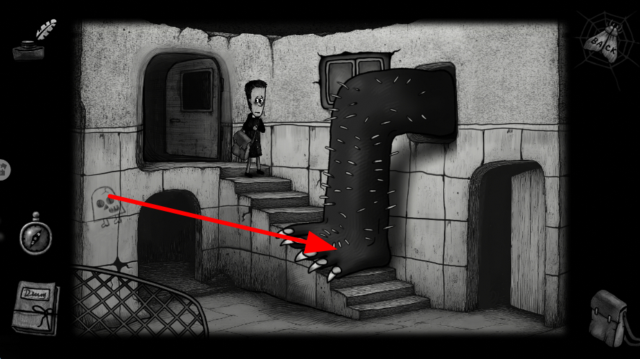 1、玩家首先用手指點(diǎn)擊場景中的區(qū)域,控制角色移動(dòng),在不同的房間與場景間穿梭,探索怪物之家2的世界,尋找線索與道具。