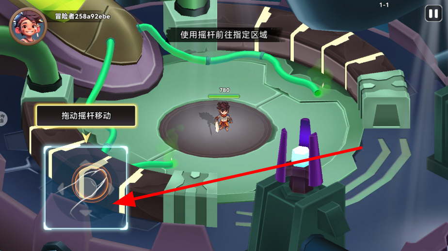 2、進入游戲的場景后,拖動搖桿來移動角色,借助搖桿能靈活控制角色在場景中行進,前往指定區(qū)域,探索不同的冒險場景。