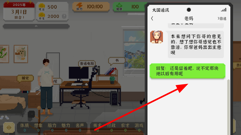 2、在生活過(guò)程中,會(huì)收到家人的消息,像老媽發(fā)來(lái)的詢問(wèn)信息,需根據(jù)情況回復(fù),與家人保持交流互動(dòng),感受生活中的親情聯(lián)系。