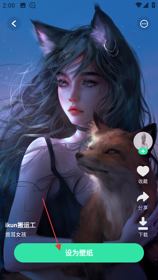 2、在靜態(tài)壁紙頁面,選擇喜歡的壁紙如獸耳女孩,進(jìn)入該壁紙?jiān)斍轫摗?