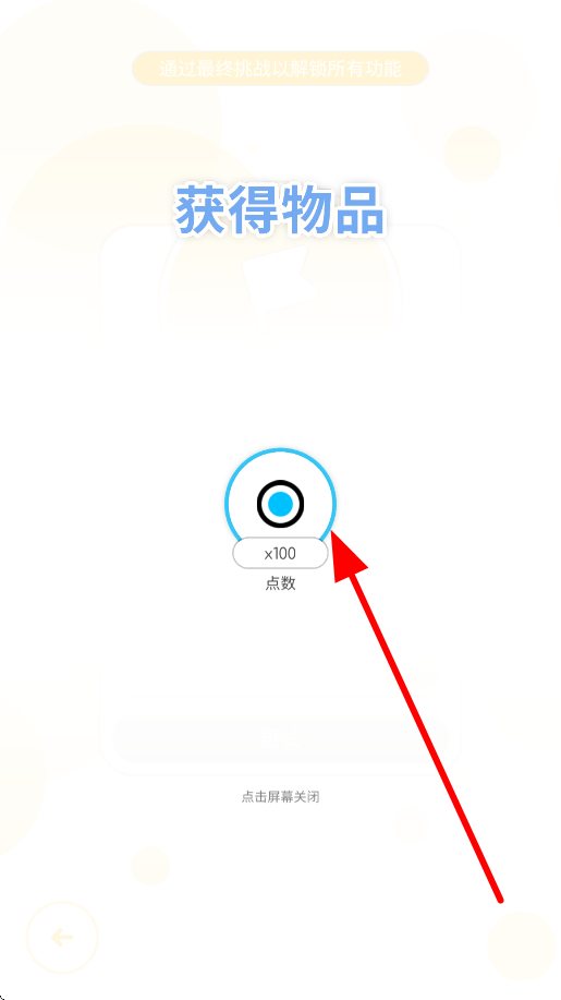 4、最后完成挑戰(zhàn)后,會(huì)顯示獲得物品的界面,可獲取點(diǎn)數(shù)等物品,這些物品能用于解鎖的游戲歌曲,之后可繼續(xù)參與其他挑戰(zhàn)。