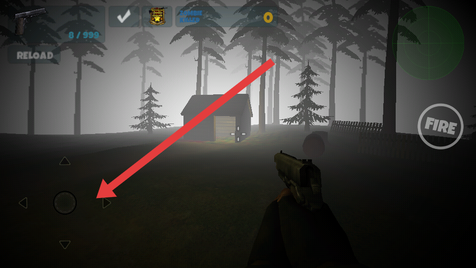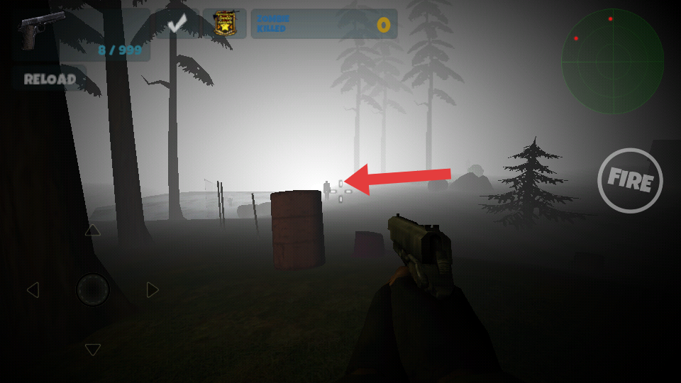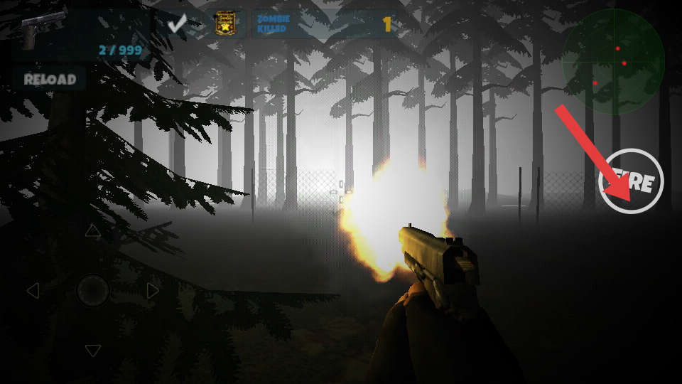 2、通過虛擬搖桿控制角色移動(dòng),在陰森的森林場景中探索,尋找僵尸的蹤跡,為戰(zhàn)斗做好準(zhǔn)備。