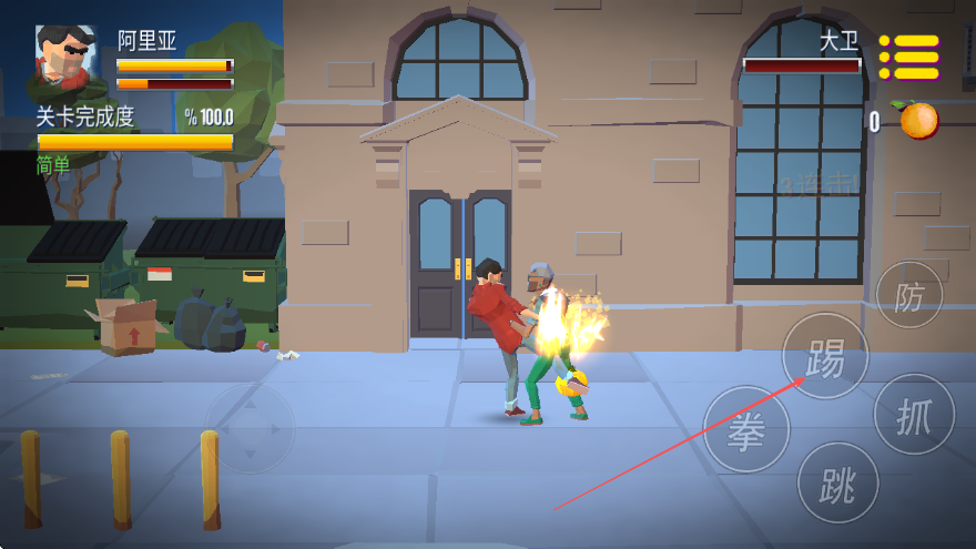 2、武器拾取與運(yùn)用:在戰(zhàn)斗場(chǎng)景中留意地面散落的棍棒、垃圾桶蓋等武器,靠近即可自動(dòng)拾取,切換武器后攻擊威力會(huì)提升,可利用武器快速擊破對(duì)手的防御。