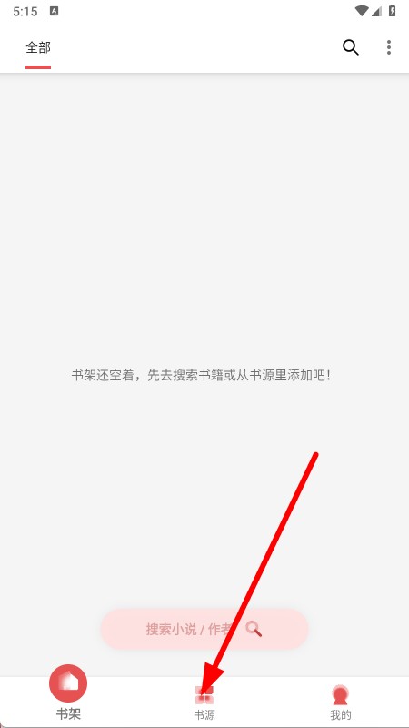 1、打開黑貓小說APP,點(diǎn)擊底部書源。