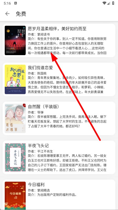 3、在免費(fèi)書籍列表中,選擇一本小說。