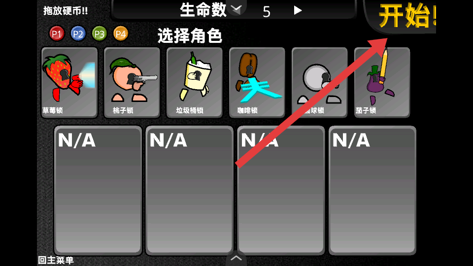 3、在角色選擇界面,選擇草莓鎖等角色后點擊開始按鈕,進(jìn)入游戲關(guān)卡,開啟與直升機(jī)的戰(zhàn)斗之旅。