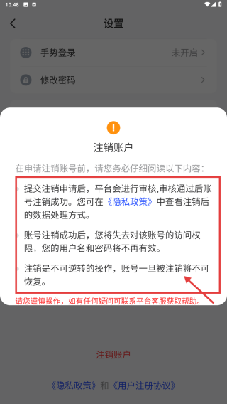 4、確認注銷賬戶說明后,提交注銷申請,完成賬戶注銷操作。