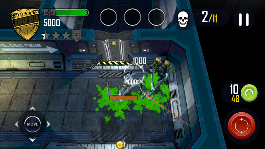 1、基礎射擊操作:通過虛擬搖桿控制特警在3D場景中移動,滑動屏幕調整射擊視角,點擊開火按鈕瞄準僵尸射擊,當武器彈藥耗盡時,點擊換彈按鈕補充彈藥。