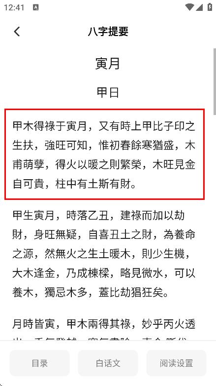 4、在寅月內(nèi)容頁面,可查看寅月下的具體文字內(nèi)容。