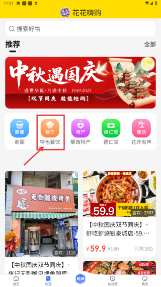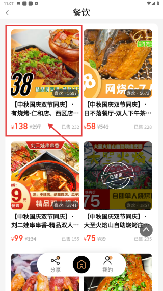 3、在餐飲服務(wù)列表中,找到中秋國(guó)慶雙節(jié)同慶有燒烤-仁和店點(diǎn)擊進(jìn)入詳情頁(yè)。