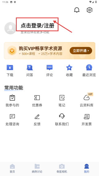 1、打開醫(yī)療學(xué)習(xí)類APP,點(diǎn)擊底部我的選項(xiàng),進(jìn)入個(gè)人中心頁(yè)面。