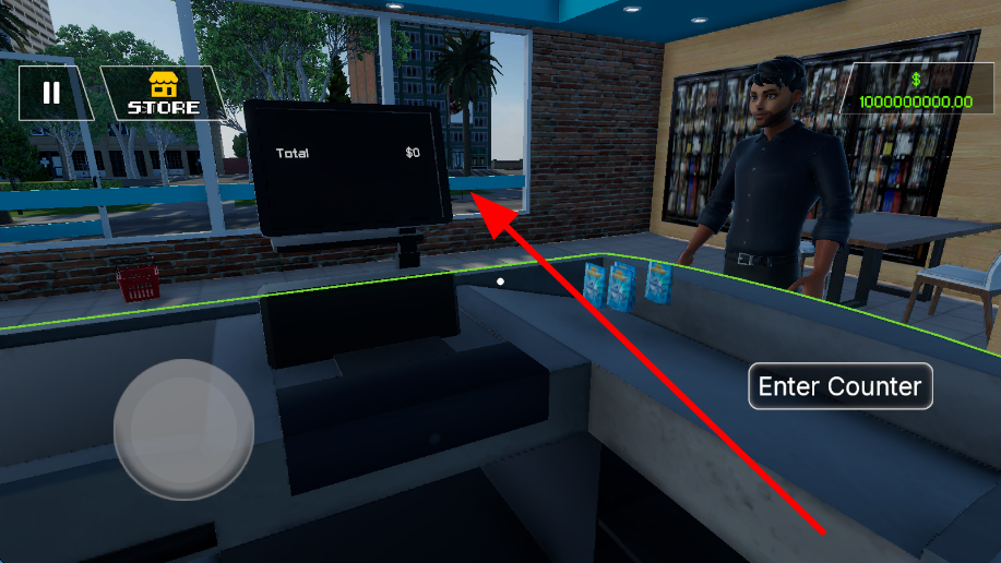 4、當(dāng)有顧客選好卡牌來(lái)到收銀臺(tái),走到收銀臺(tái)處點(diǎn)擊EnterCounter按鈕,此時(shí)收銀機(jī)屏幕會(huì)顯示消費(fèi)總額,完成結(jié)賬操作,收取費(fèi)用。