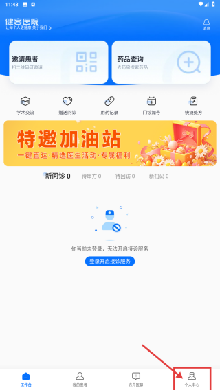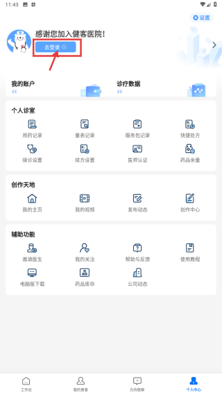 1、打開醫(yī)療類APP,點(diǎn)擊底部個(gè)人中心選項(xiàng),進(jìn)入個(gè)人中心頁面。