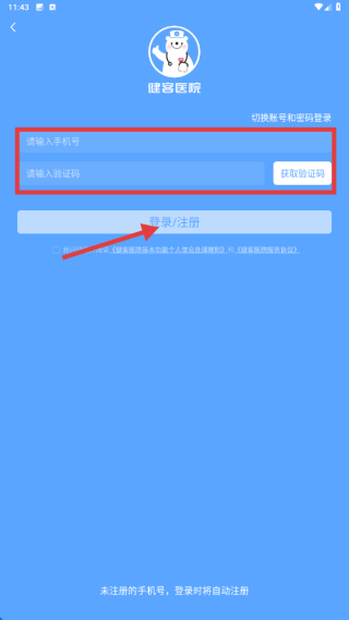 4、輸入驗(yàn)證碼后點(diǎn)擊登錄/注冊按鈕,完成賬號登錄操作。