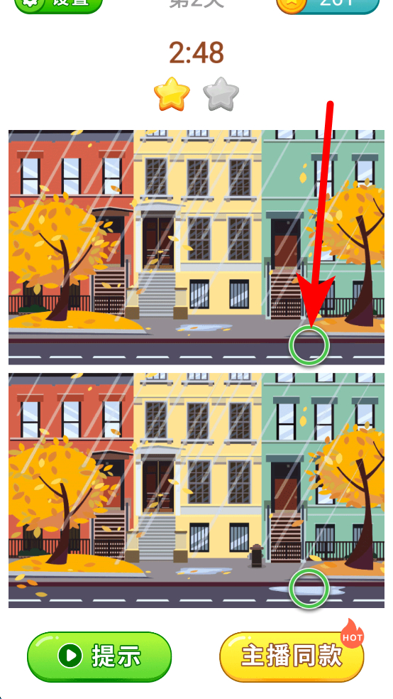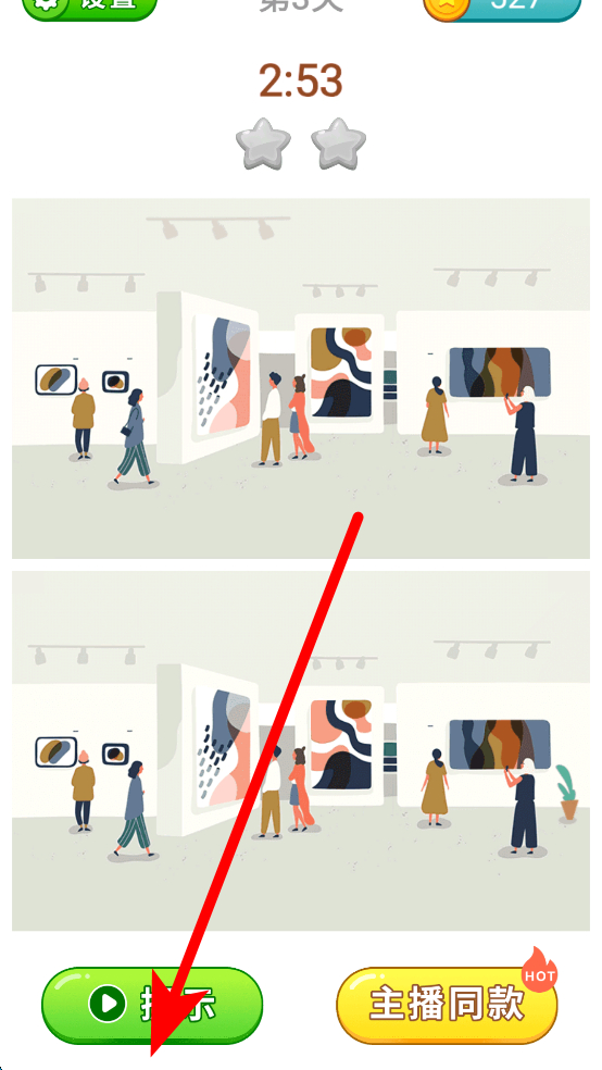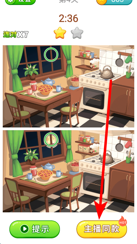 3、若在找差異過程中遇到困難,可使用提示功能,提示會給予一定的線索,幫助玩家更快找到差異,繼續(xù)推進(jìn)游戲。