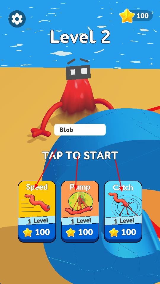 1、點(diǎn)擊開(kāi)啟游戲,可消耗星星升級(jí)速度、抽吸、捕捉等能力,提升角色基礎(chǔ)屬性。