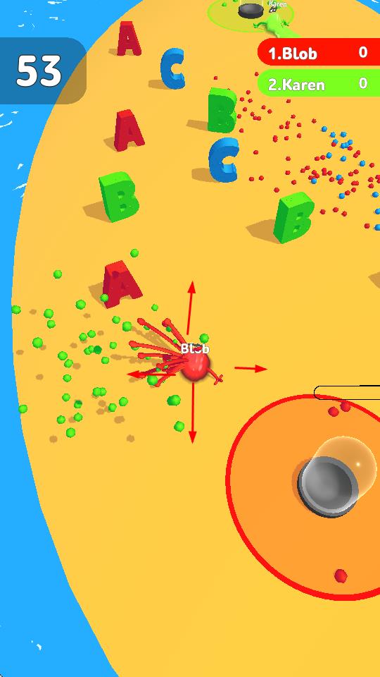 2、操控角色在場(chǎng)景中移動(dòng),收集散落的彩色顆粒與字母道具,同時(shí)與其他玩家競(jìng)爭(zhēng),積累分?jǐn)?shù)。