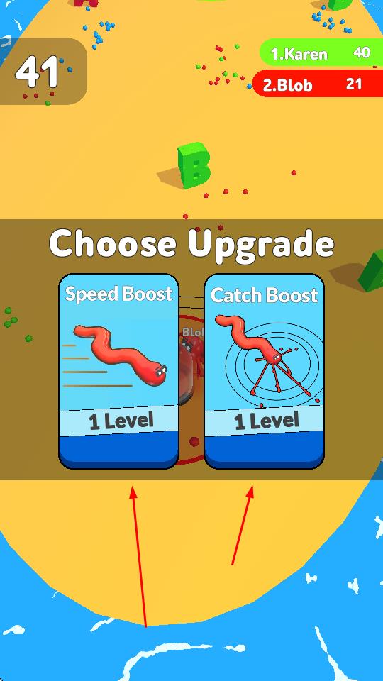 3、游戲過(guò)程中會(huì)出現(xiàn)升級(jí)選項(xiàng),選擇后強(qiáng)化對(duì)應(yīng)能力,助力收集與競(jìng)爭(zhēng)。
