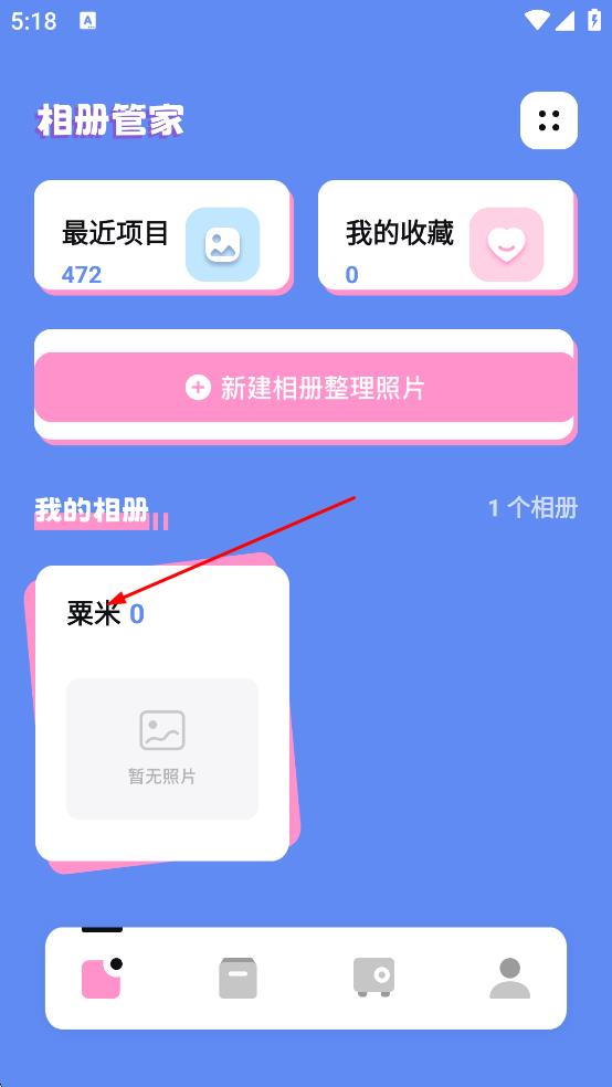 1、在相冊管家頁面,點擊粟米相冊,進(jìn)入該相冊頁面。