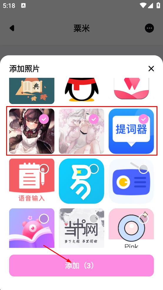 3、選好要添加的照片后,點擊添加,將照片添加到相冊。