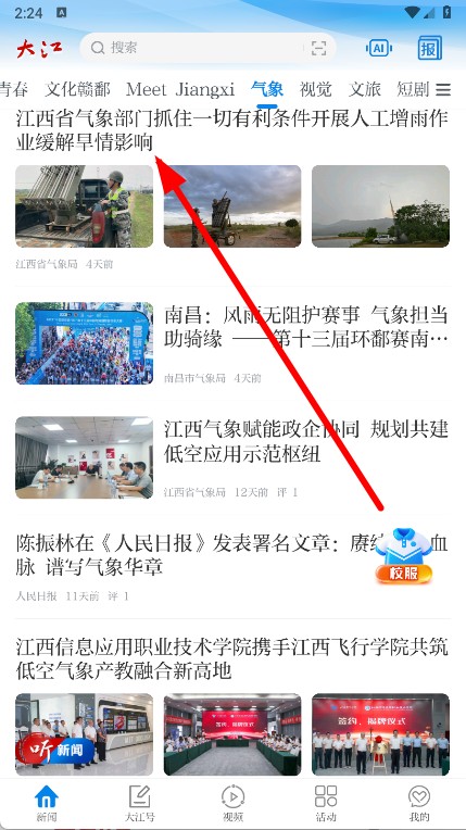 3、進入氣象頻道后,選擇感興趣的氣象新聞。