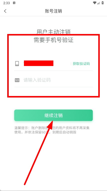 5、輸入手機號驗證通過后,點擊繼續(xù)注銷,即可完成注銷。