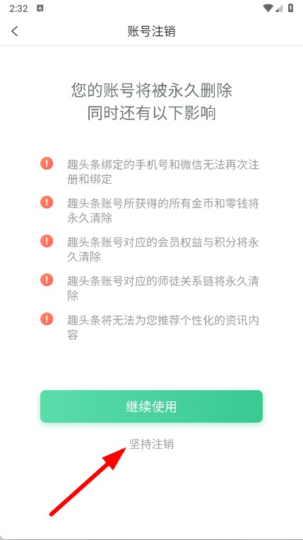4、進入注銷賬號頁面,點擊堅持注銷。