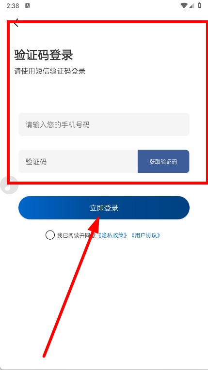 4、輸入手機(jī)號(hào)、獲取并輸入驗(yàn)證碼,勾選同意相關(guān)協(xié)議后,點(diǎn)擊立即登錄,完成注冊(cè)登錄。
