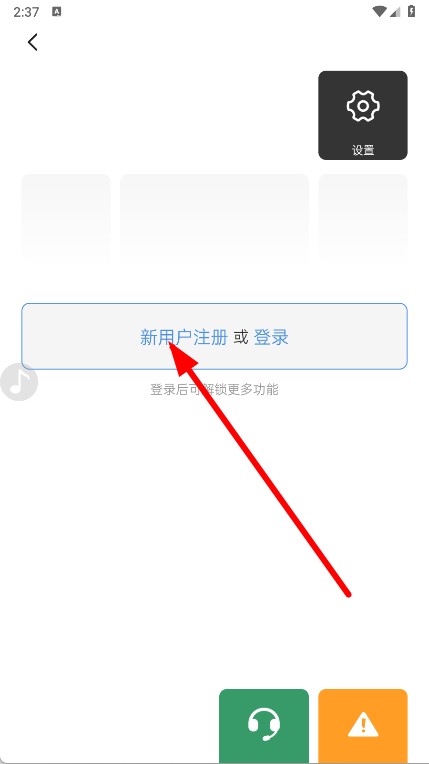 3、在個(gè)人頁(yè)面,點(diǎn)擊新用戶注冊(cè)或登錄。