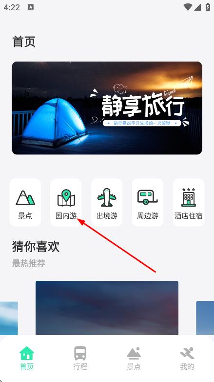 2、在首頁(yè),點(diǎn)擊國(guó)內(nèi)游,進(jìn)入國(guó)內(nèi)游頁(yè)面。