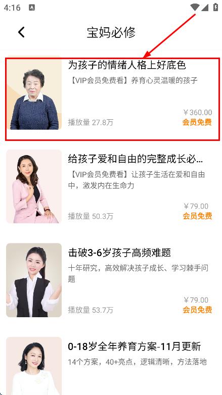 2、點(diǎn)擊課程,如為孩子的情緒人格上好底色,進(jìn)入課程詳情頁(yè)面。