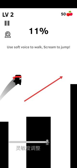 3、在第二關(guān)中,繼續(xù)通過聲音控制角色跳躍,跨越不同高度的障礙物,通過熟練的聲音控制獲得更高完成度。