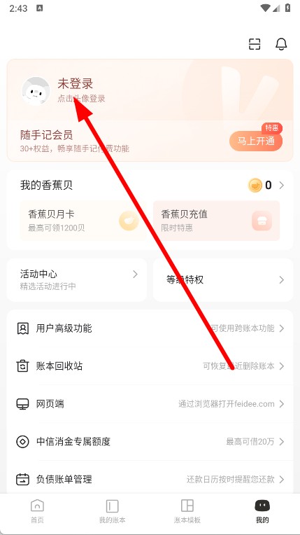 3、在我的頁(yè)面,點(diǎn)擊未登錄處。