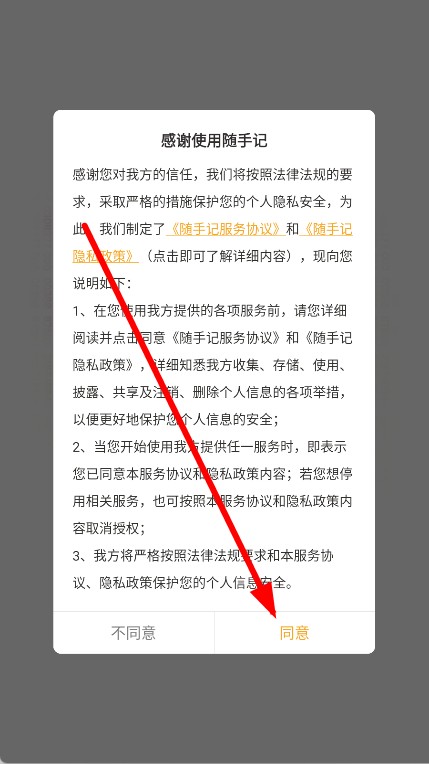 1、打開APP,在彈窗中點(diǎn)擊同意。