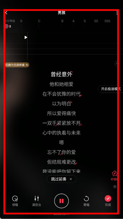 4、進(jìn)入演唱界面,演唱完成點(diǎn)擊完成。