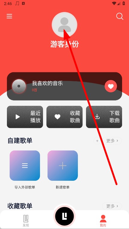 2、在我的頁(yè)面,點(diǎn)擊游客身份處。