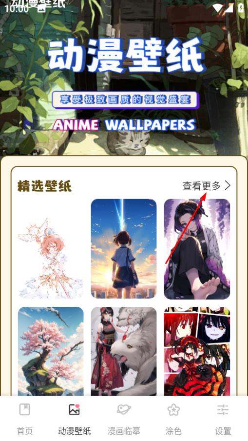 2、在動漫壁紙頁面,點擊查看更多,進(jìn)入動漫壁紙列表頁面。
